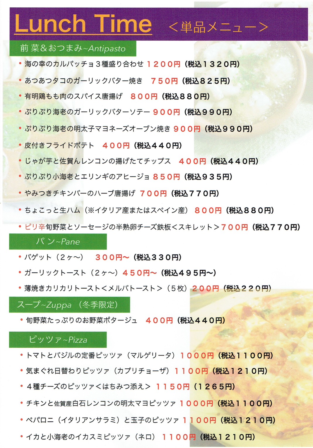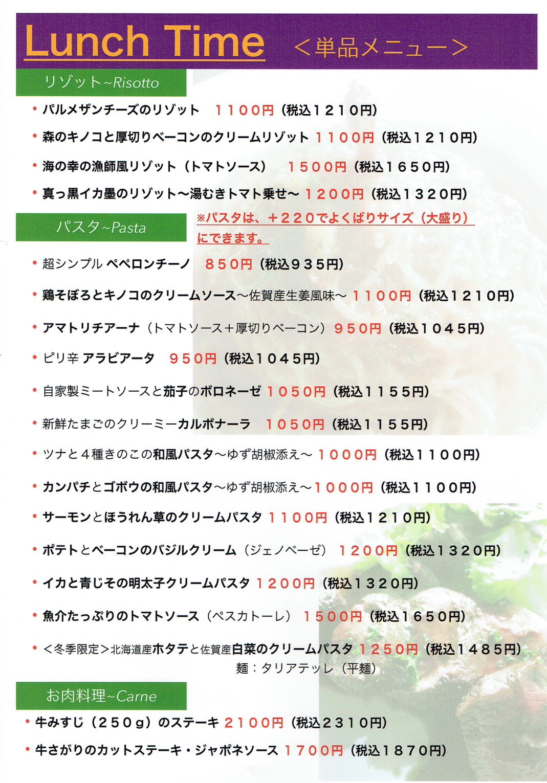 <プラスメニュー(別料金 ※全て税込み)>