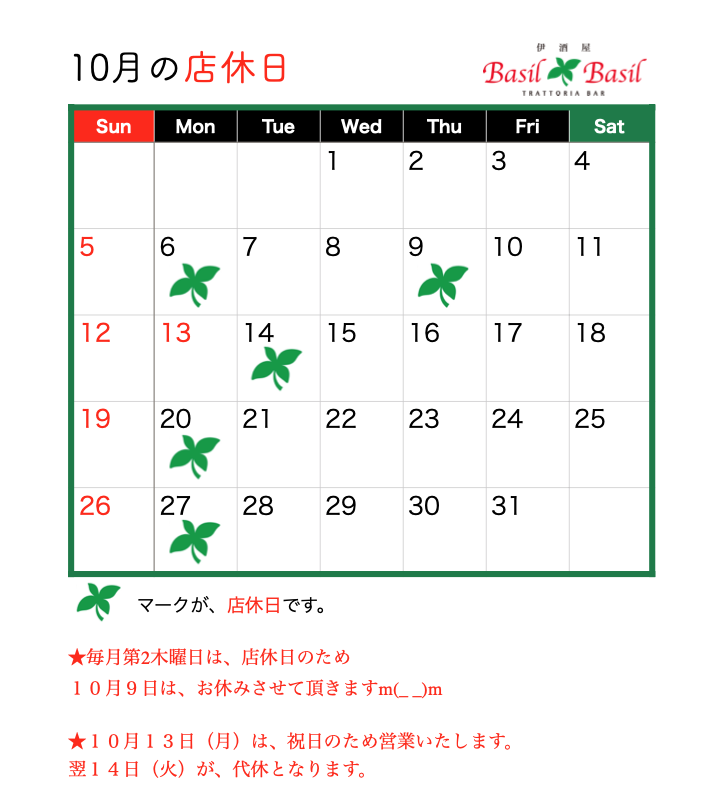 店休日(毎月第2木曜日)
